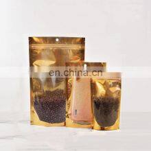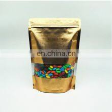 Embossed Gold Aluminium Foil Zipper Stand Up Mylar Pouch Packaging Ziplock Bag With Clear Window Snack Grains Beans