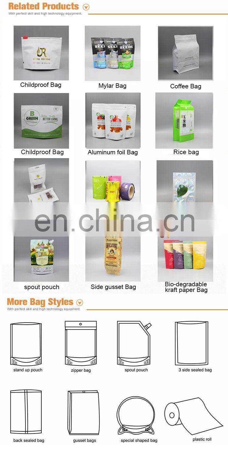 Reseal Plastic Bags Custom Powder Coffee Etythritol Sugar Food Packaging Stand up Pouches for Zipper
