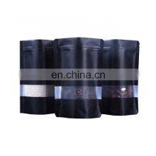 Wholesale Food Grade Black Matte Stand Up Pouch With Clear Window With Customized Sticker