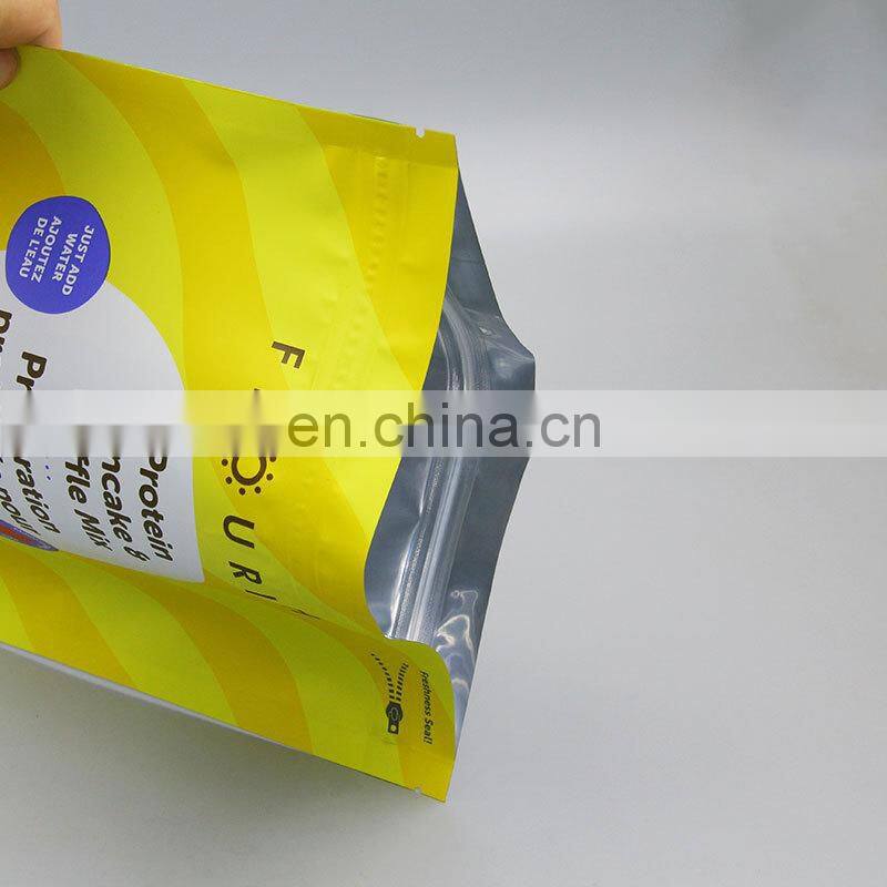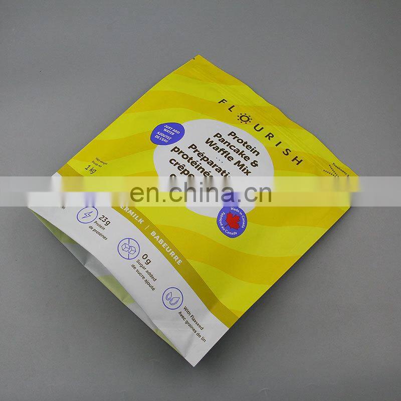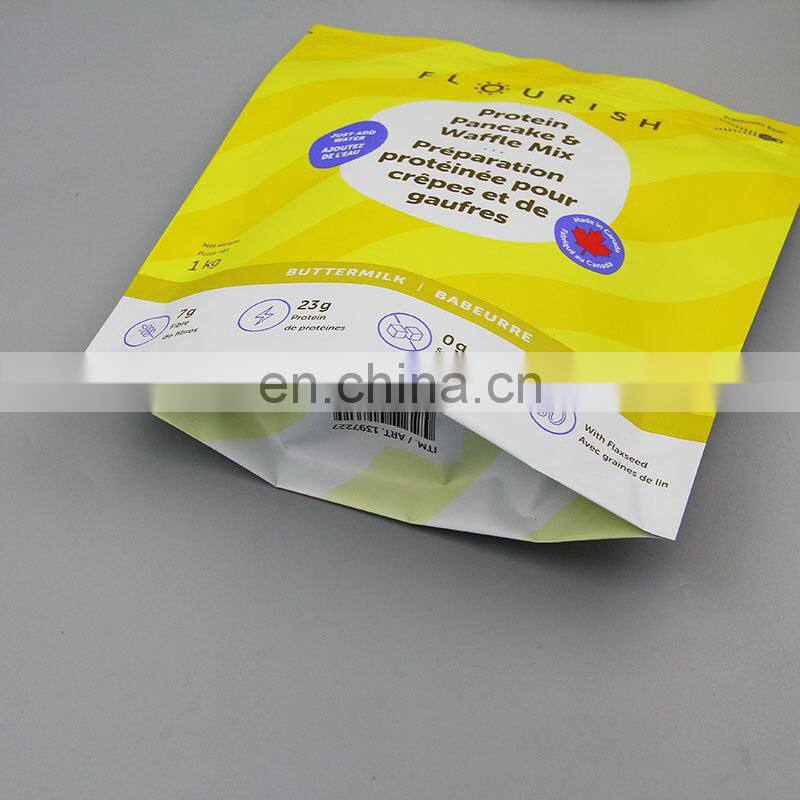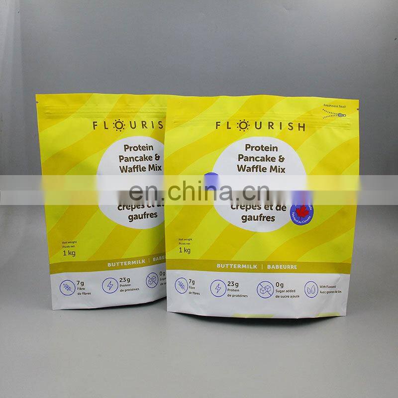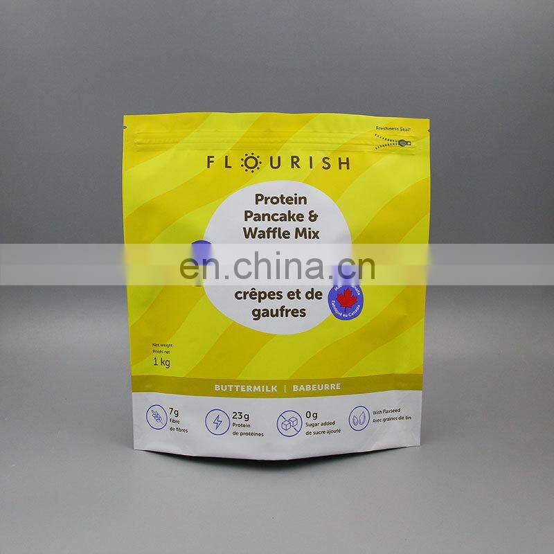 Manufactory Ziplock Bag Food Stand up Aluminum Foil Lined Plastic Packaging Customize Mylar 1kg Protein Pancake Waffle Mix Pouch