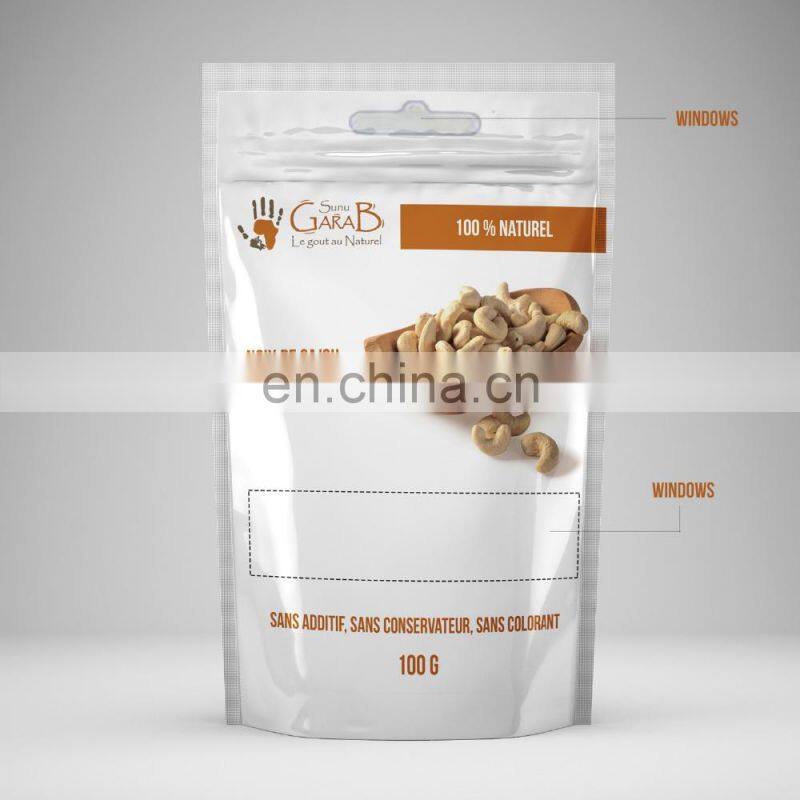 China Factory Supply Hot Sales Glossy Stand up Peanuts Cashewn Bags Nuts Packaging Bags With Hanger Hole