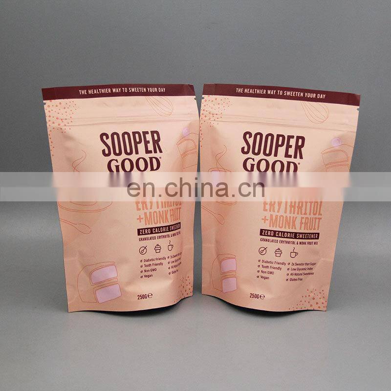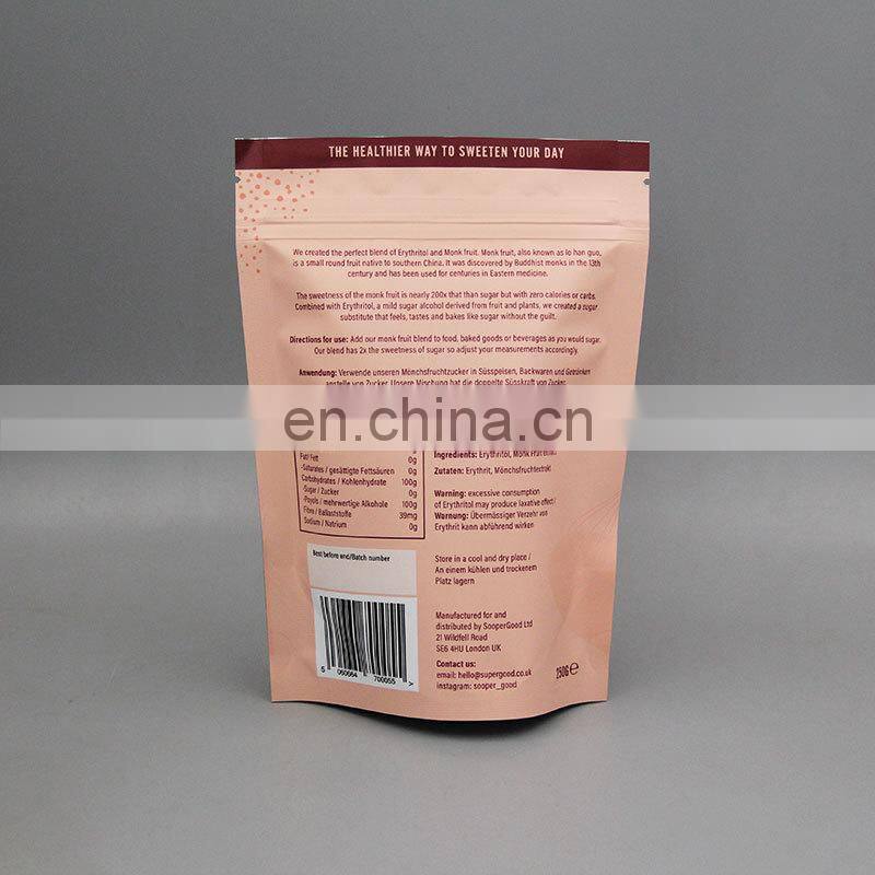 High Barrier Custom Printed Logo Aluminum Foil Erythritol Granules Stand up Milk Whey Protein Powder Bags