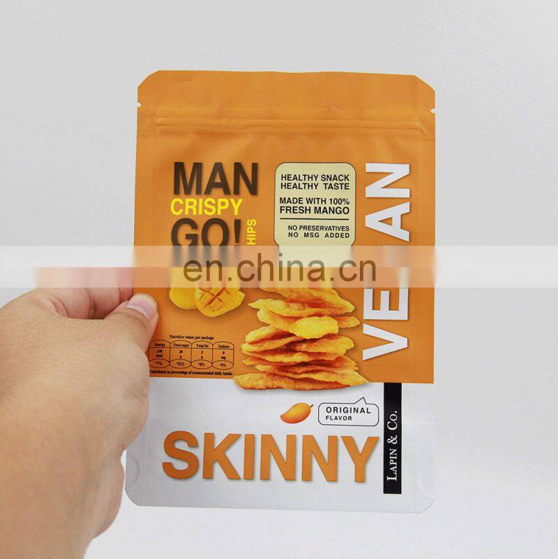 China Supplier Wholesale Matt Laminated Aluminum Foil Zip Lock Plastic Packaging Pouch Banana Mango Chips Bag