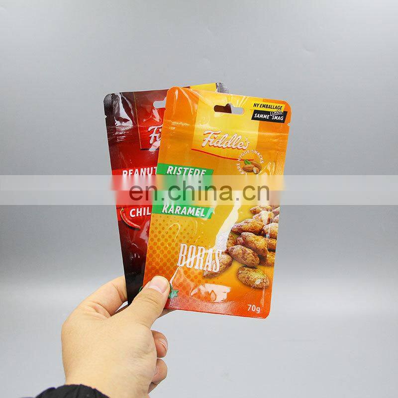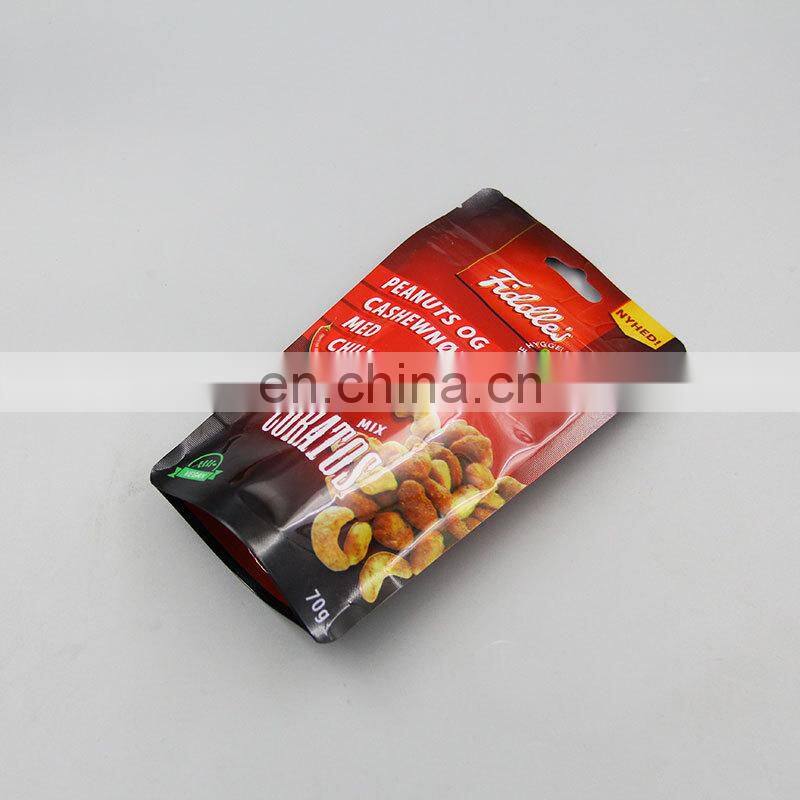 China Factory Supply Hot Sales Glossy Stand up Peanuts Cashewn Bags Nuts Packaging Bags With Hanger Hole