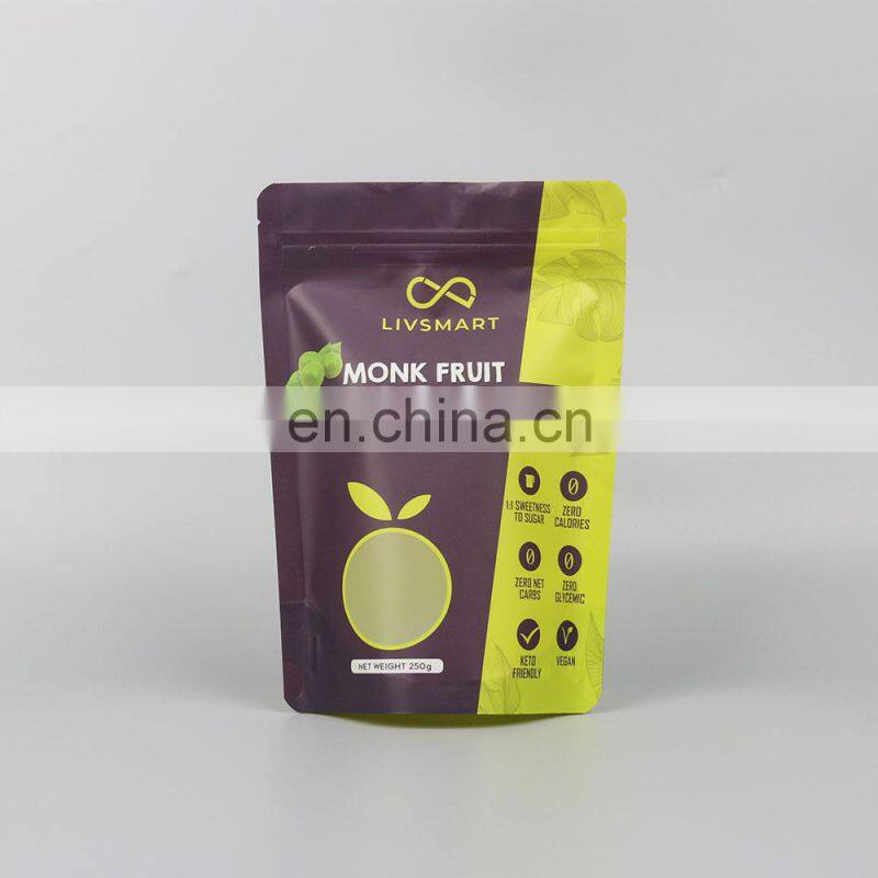 Factory Supply Customized Print Ziplock Bags Monk Fruit Plastic Packaging Bags With Transparent Window