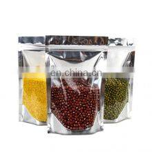 Silver Reflective Mixed Material Zipper Stand Bag Large Transparent Window Zip Lock Pouch for Food