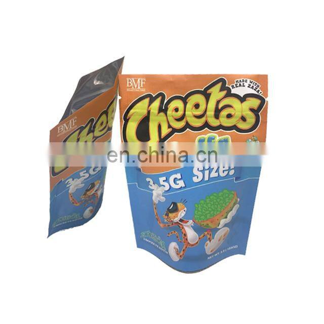 Custom Logo Moisture Proof Mylar 3.5g Smell Proof Foil Snack Stand up Pouches With Clear Window Food Ziplock Bag