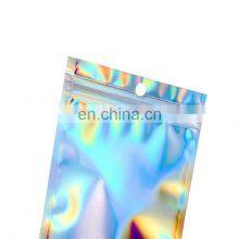 Customized Logo Shiny Laser Holographic Sealed Odor Zipper Bag 3 Side Seal Zip Lock Packaging Bag