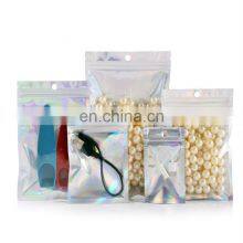 Translucent Customized Logo Shiny Laser Holographic Seal Odor Zipper Bag 3 Side Seal Zip Lock Packaging Bag for Beauty Products