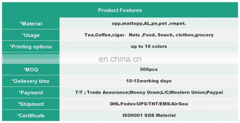 Welcome to visit our shop. Our factory focus on making flexible package with over 17+ years experience. we can make all kinds of food packaging bag, such as candy packaging bag, coffee packaging bag, tea packaging bag,baby food pouch, cookie packaging bag,powder packaging bag, nuts packaging bag,rice handle bag or other snack packaging bag, and we also can make cloth packaging bag,mask packaging bag, phone case packaging bag, cosmetic packaging bag and so on. We also welcome OEM and ODM orders.