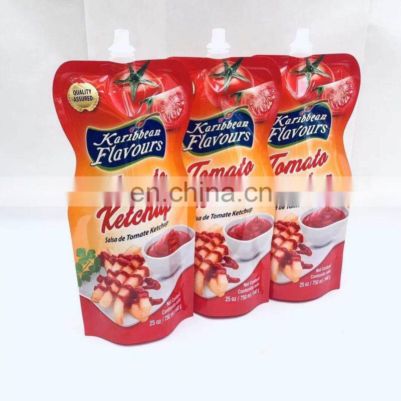 Custom Design 250ml 500ml Tomato Ketchup Liquid Drinks Stand up Pouch Packaging Doy Pack Plastic Spout Bags