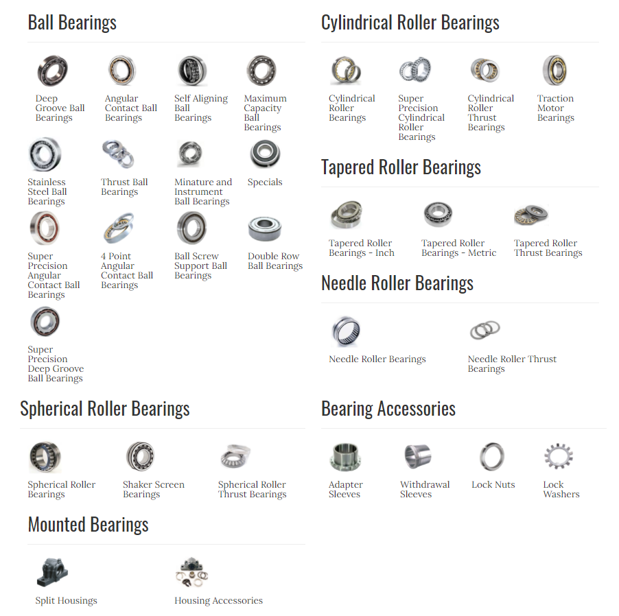 A2: We make a variety of bearing types, including ball bearings, roller bearings, thrust bearings, combination bearings, pillow block bearings, custom bearing, and more.