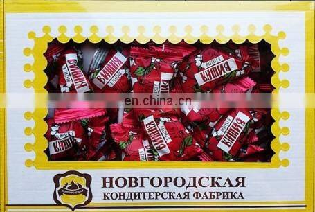 "Novgorod confectionery factory" is a modern Russian enterprise located in the ancient Russian city of Veliky Novgorod in the North-West of Russia, founded in 1991, and producing a wide range of confectionery products: fondant candies, jelly, souffle, dairy (such as Cow), soft caramel candies, glazed dried fruits, butter cookies and other products.