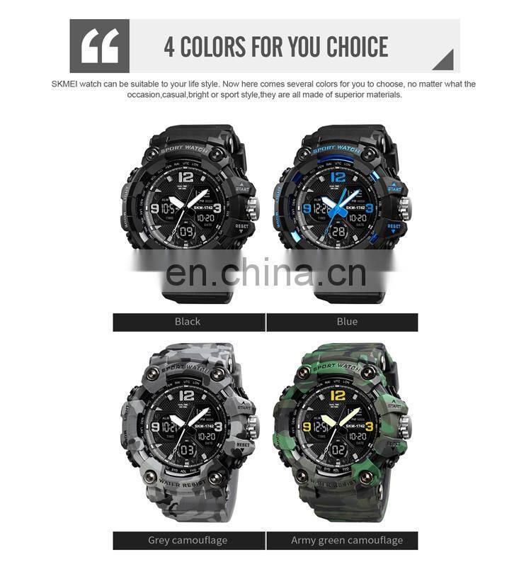 Fashion SKMEI 1742 Plastic Strap 50m Water Resistant Watch Analog Digital Sport Alarm Wrist Watch for Men