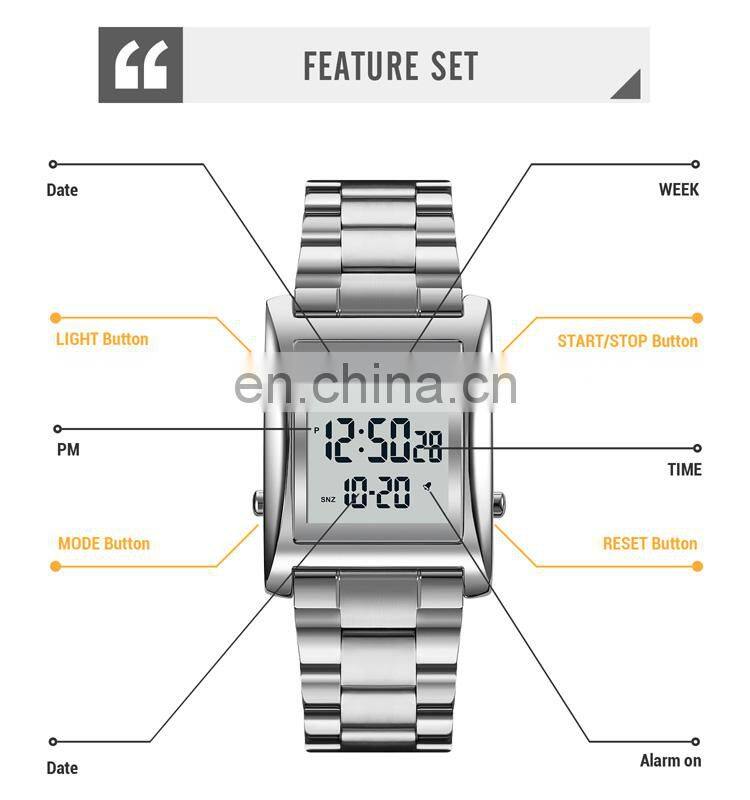 Home > Products > Online Wholesale Watches > Luxury Skmei 1812 Water Resistant Digital Square Stainless Steel Watches Men Wrist Watch