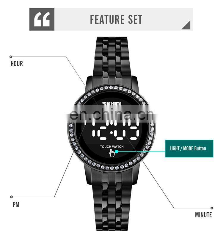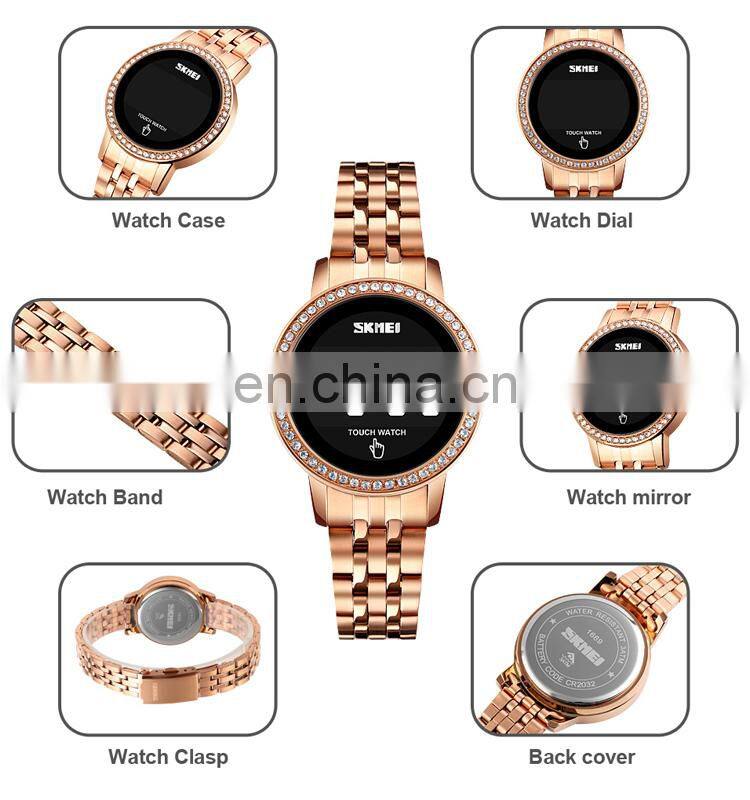 Luxury SKMEI 1669 LED Touch Screen Ladies Watch Stainless Steel Bracelet Women