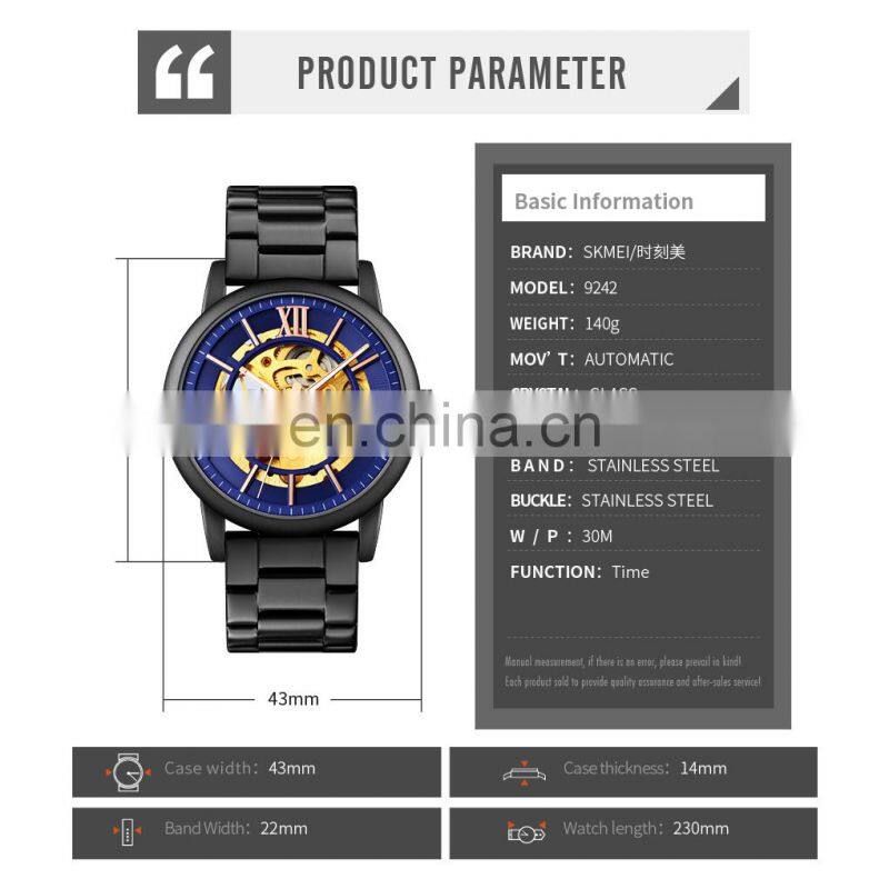 High Quality SKMEI 9242 Stainless Steel Skeleton Mechanical Automatic Watch Men Wrist