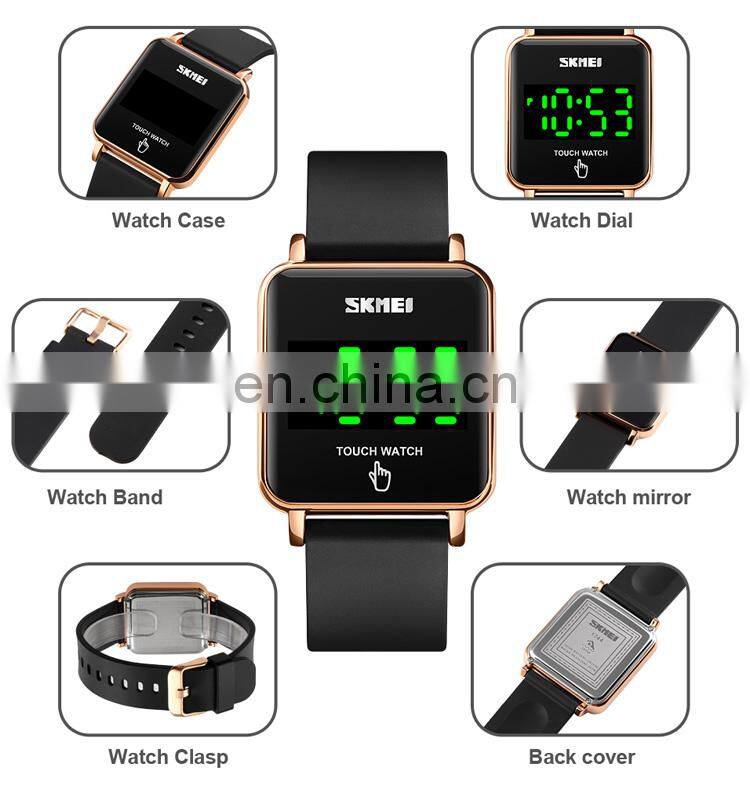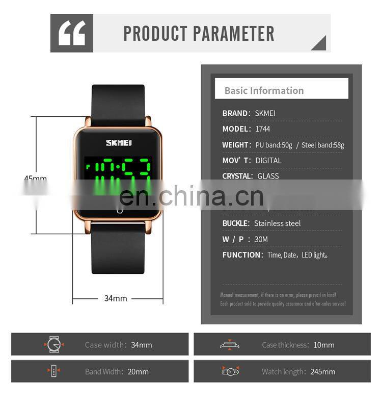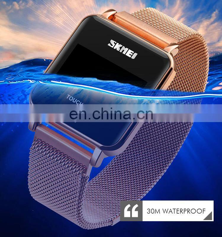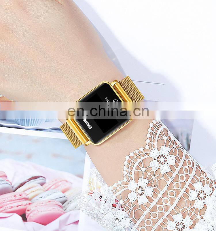 SKMEI 1744 Rose Gold Magnet Band Ladies Stainless Steel Mesh Women Square Digital LED Watch