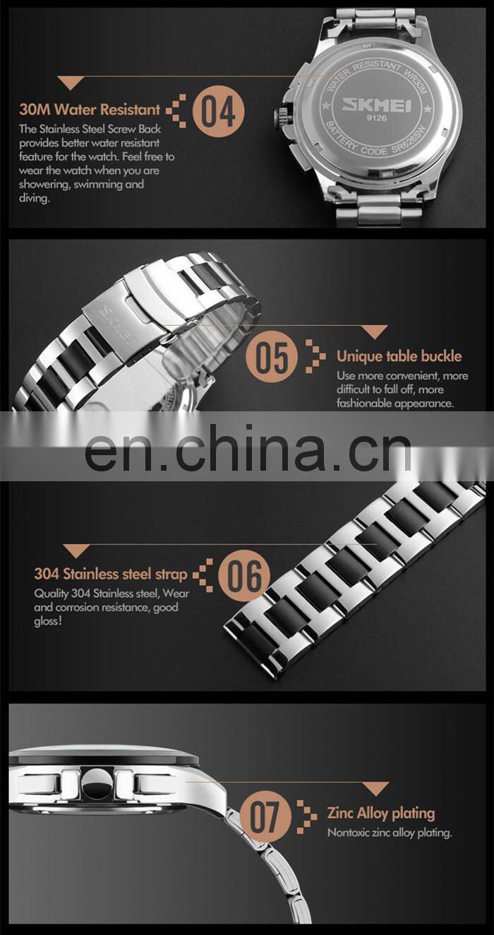Men watches fashion Top brand luxury SKMEI 9126 men casual sport wristwatch chronograph business quartz watch relogio masculino