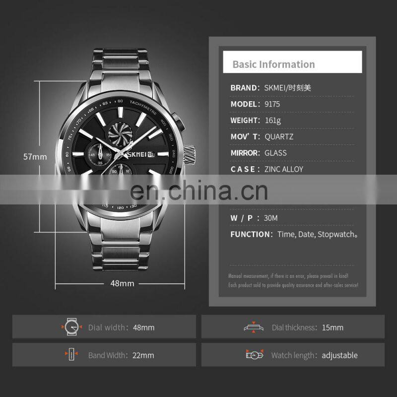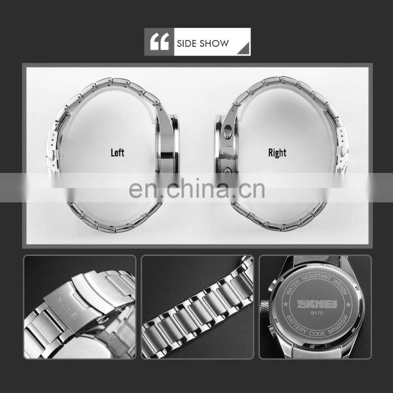 Hot products Skmei 9175 waterproof wristwatch quartz business man stainless steel strap watch orologio uomo