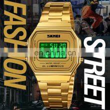 Skmei 1381 Wholesale Price Square Gold Digital Men Watch Stainless Steel 5 ATM Waterproof