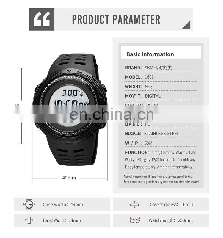 Skmei 1681 Men Waterproof Sports Military Watches Digital Watch Chronograph Temperature Wristwatches