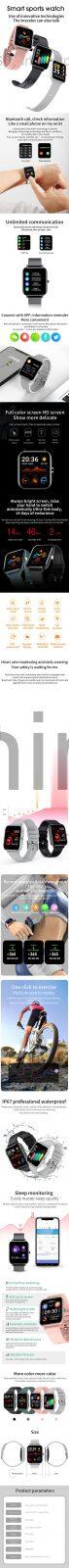 Main functions: Bluetooth dialing / address book synchronization / call recording / Bluetooth call / Bluetooth music playing / weather push / dial push / step counting / mileage / calorie consumption / sleep detection / sedentary reminder / heart rate monitoring / blood pressure monitoring / blood oxygen monitoring / exercise mode / QQ message reminder / wechat message reminder / Facebook reminder / line push / WhatsApp push / twitter push / kakaotalk push / incoming call reminder / hold