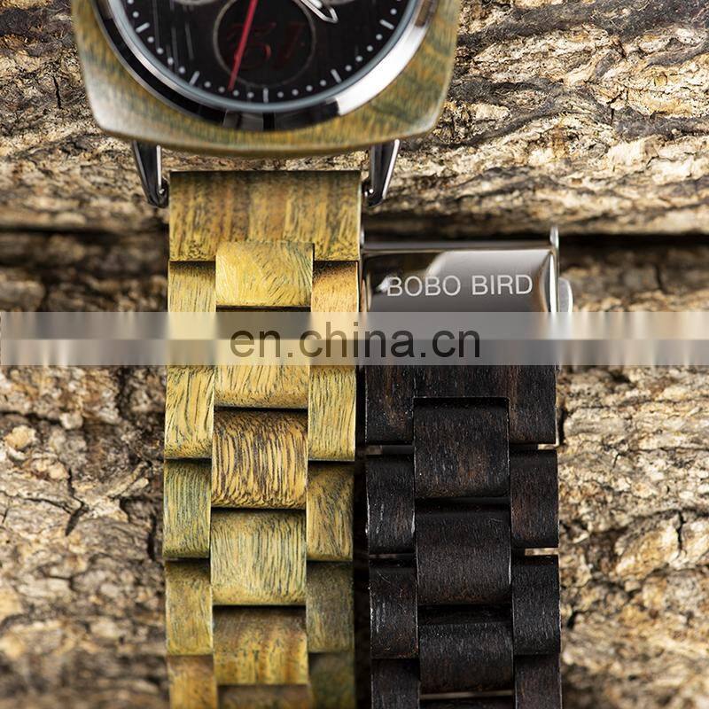 BOBO BIRD Men Chronograph Watch Luxury Wooden Watches Date Dislaly OEM Customize Logo With Woo Box Dropshipping