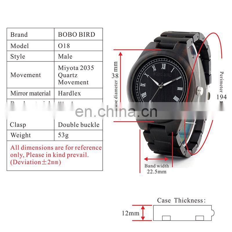 Watch Dial Printing Watches Men Brand BOBO BIRD Handmade Japan Quartz Movement Black Color Wooden Watch