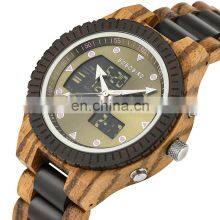 BOBO BIRD Zebra Wood Watch Men Dual Display Quartz Watches LED Clock With Wooden Band Customize Logo OEM Dropshipping