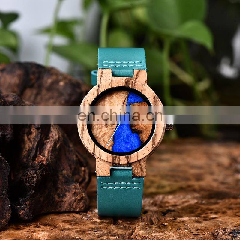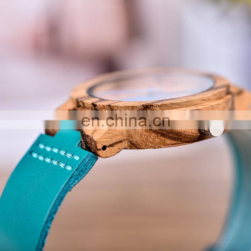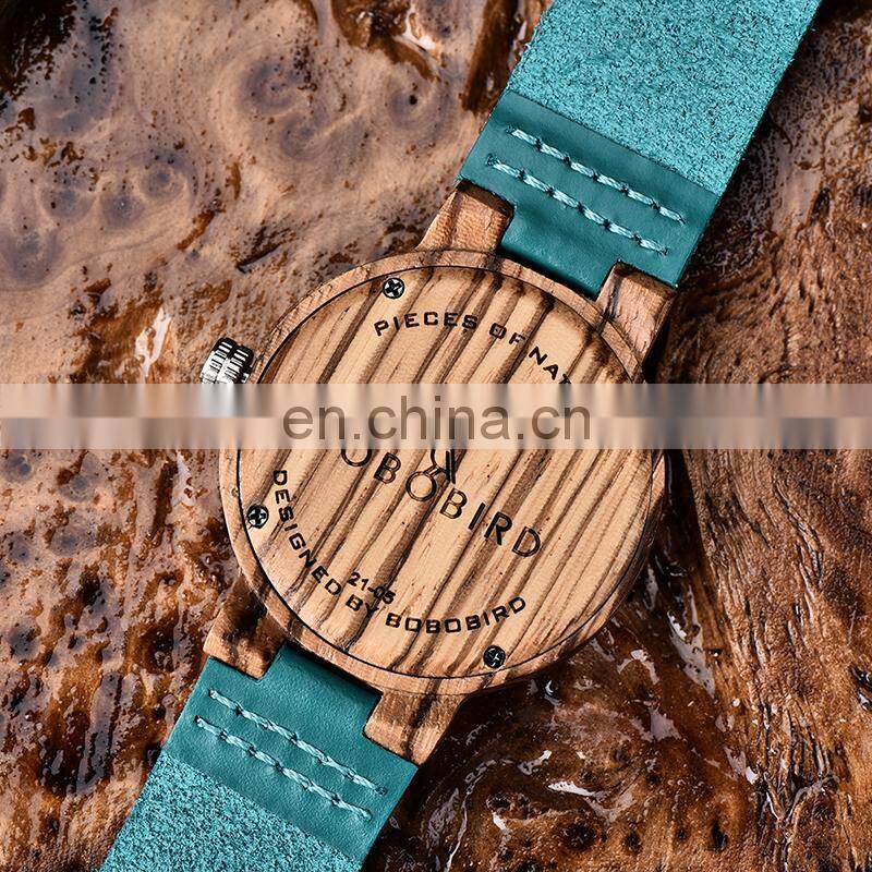 2022 BOBO BIRD Oem Custom Logo Women Wood Watch Bamboo Watch Leather Strap With Blue