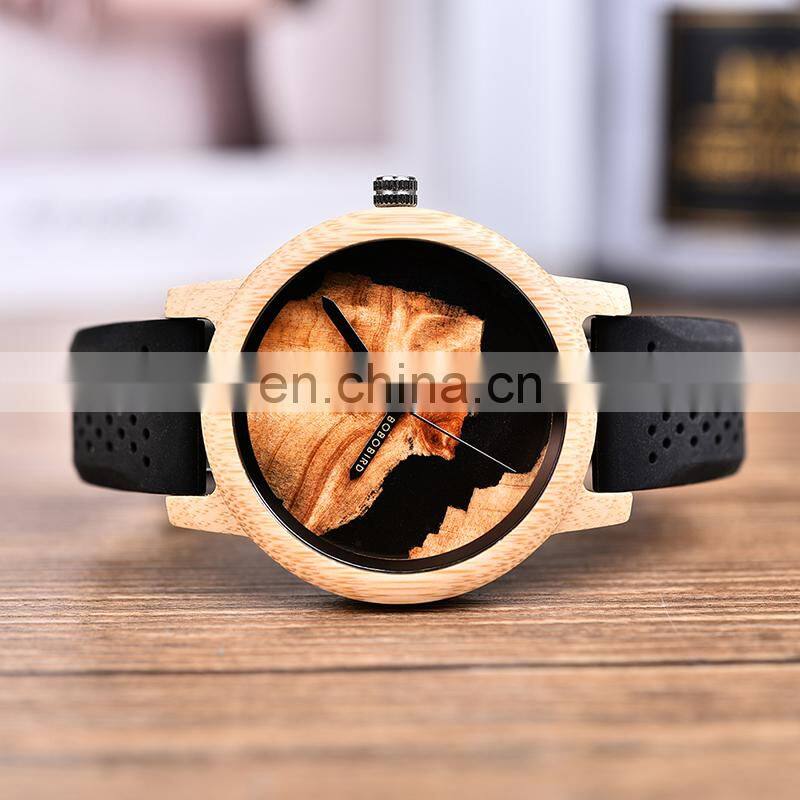 BOBO BIRD Japan Quartz Movement Resin Dial Bamboo Watches Men Wrist Sports Silicone Watch