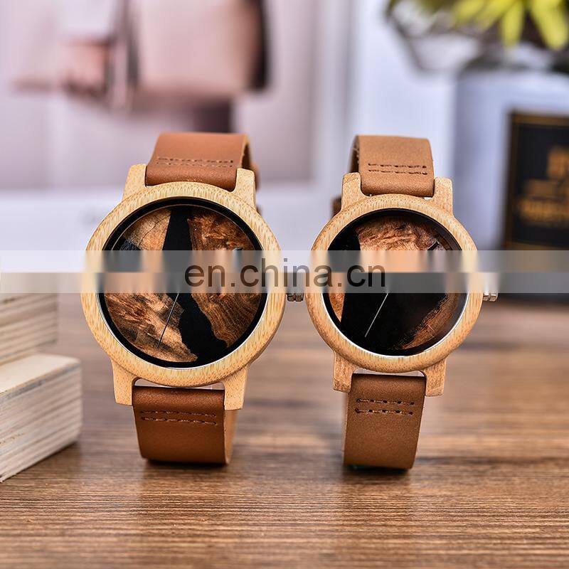 Watches in Bulk BOBO BIRD Couple Watch Set Resin Bamboo Leather Wooden Watches for Men and Women