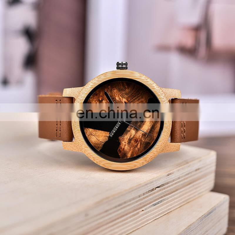 Home > Products > Leather Band Watches > BOBO BIRD Leather Strap Wooden Watch Wood Resin Design Wristwatch for Men Couple Watches Customize Gift OEM