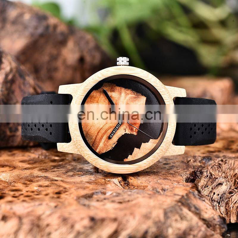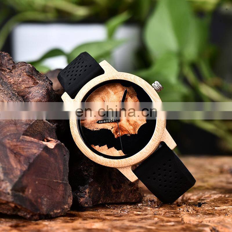 Home > Products > Leather Band Watches > BOBO BIRD Japan Quartz Movement Resin Dial Bamboo Watches Men Wrist Sports Silicone Watch