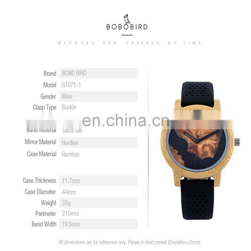 BOBO BIRD Japan Quartz Movement Resin Dial Bamboo Watches Men Wrist Sports Silicone Watch