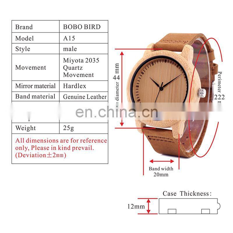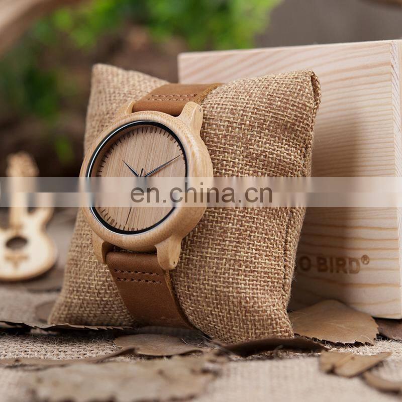 BOBO BIRD Bamboo Wooden Watches for Men With Genuine Leather Strap Accept LOGO Customization