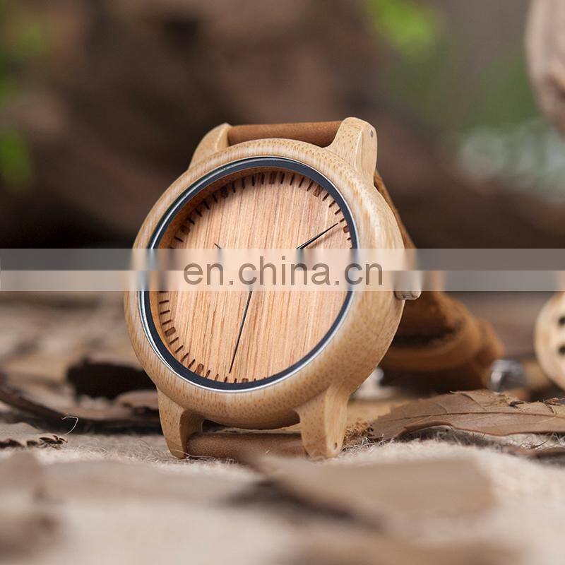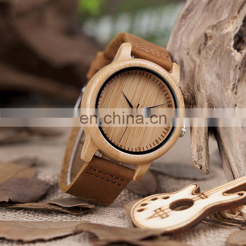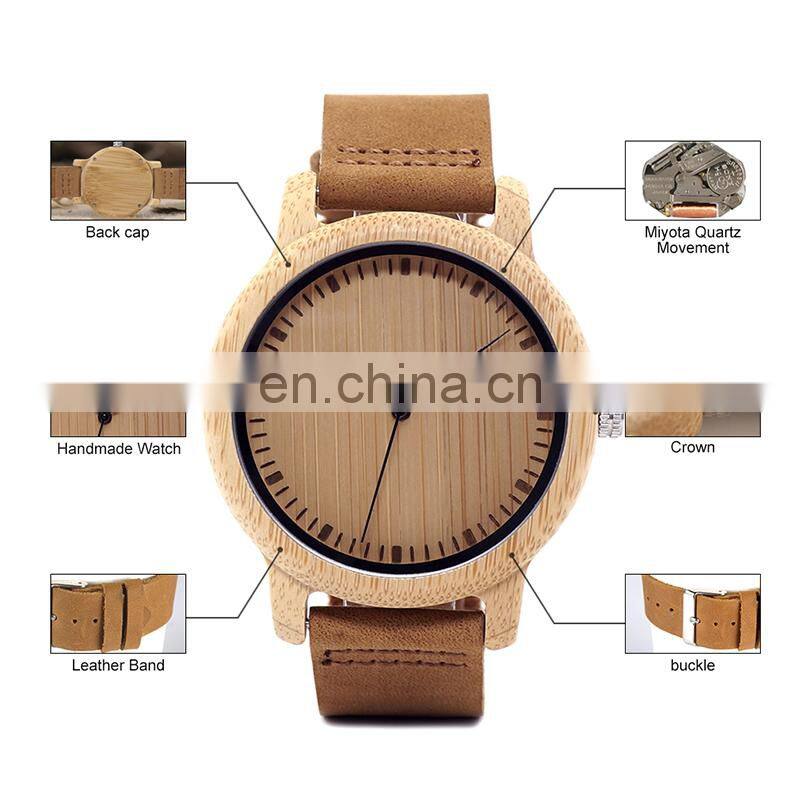 Original Wholesale Handcrafted Wood Watch Leather Bamboo Watch Man Japan Quartz Movement