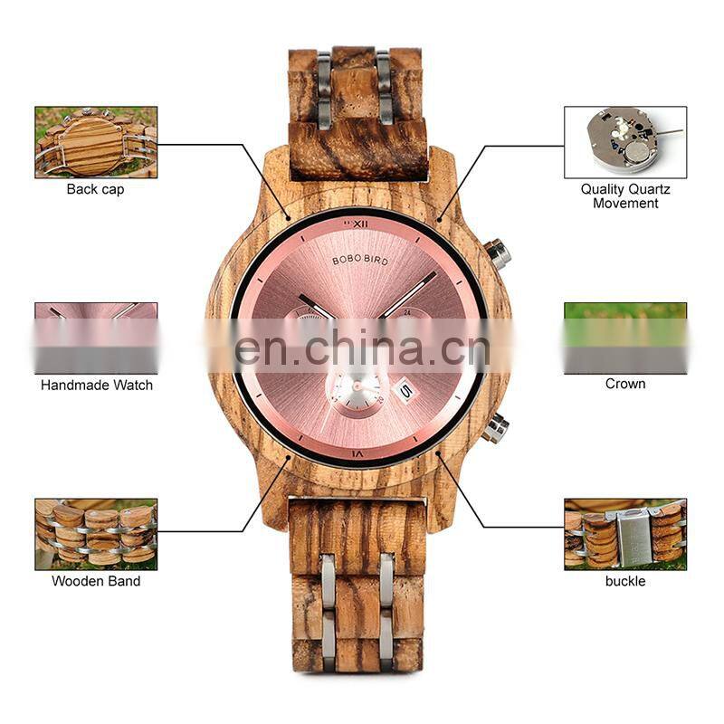 BOBO BIRD Engrave Own Logo Classic Hand Made Watch Brand Japanese Quartz Movement Chronograph Function