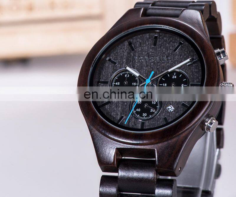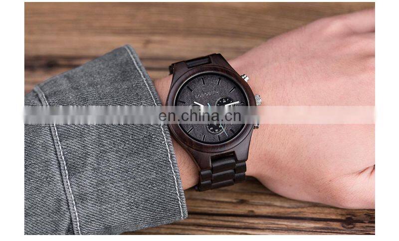 Home > Products > Ungrouped > Multifunction BOBO BIRD Handmade Casual Chronograph Quartz Watch Custom Wood Watches