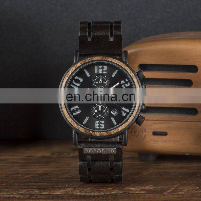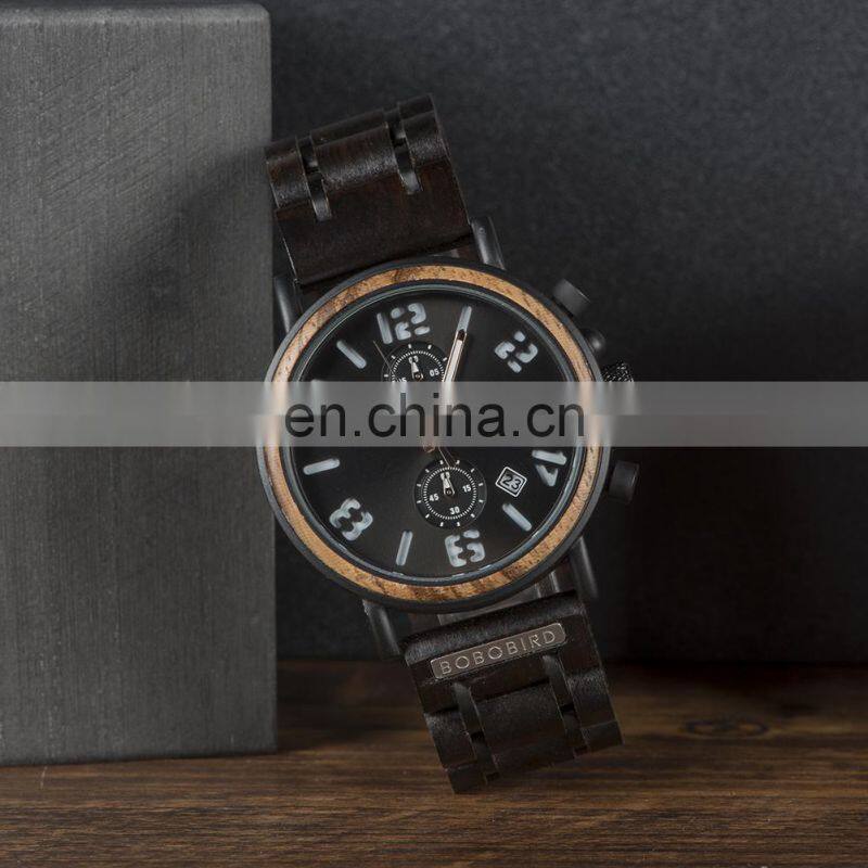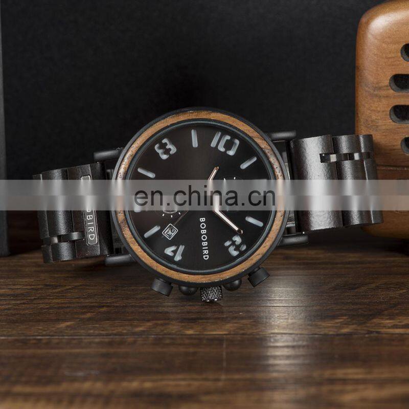 BOBO BIRD Wholesale Wood Watch Men Luxury Timepieces Chronograph Military Quartz Watches Christmas Gifts Dropshipping