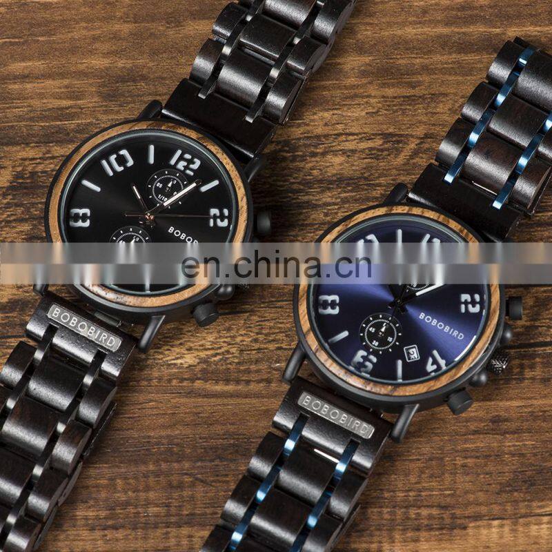 BOBO BIRD Custom Your Own Love Logo Chronograph Multifunction Function Wood and Steel Watches Unisex