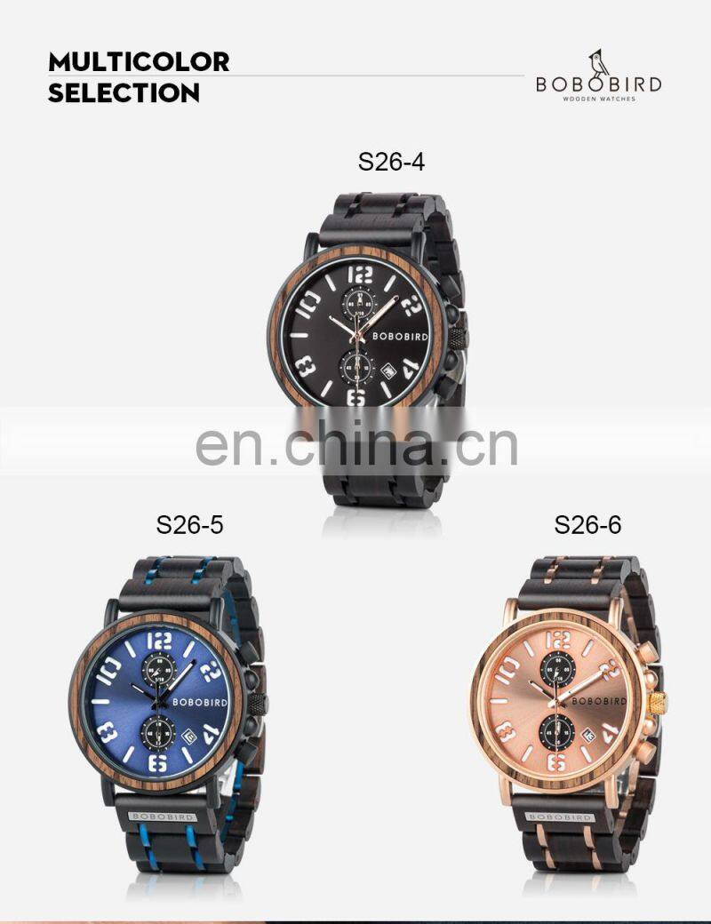 BOBO BIRD Calendar 24 Hours Full Function Stainless Steel 2022 Mens Wood Watches Custom Uunique Watches Logo