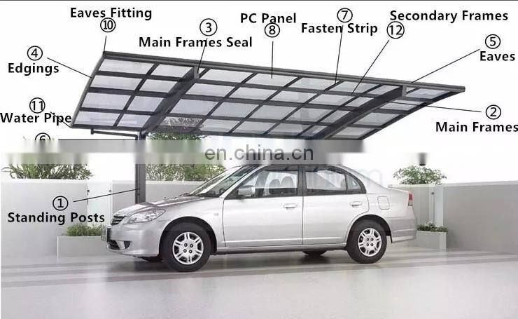 High Quality Poly Carbonate Sheet Roof Metal Type Car Shelter Diy Aluminum Carport Parts