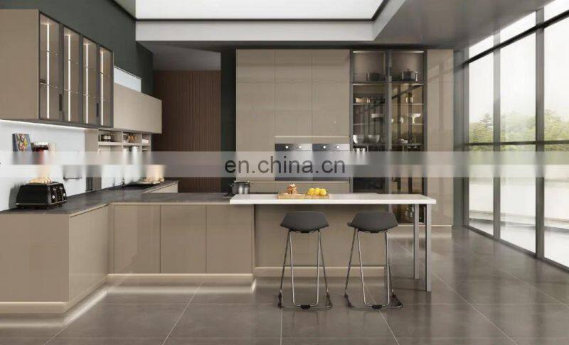 2021 Modular Kitchen Furniture High Gloss Waterproof Lacquer Acrylic Kitchen Cabinet With Islands Designs Cabinets