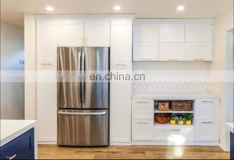 2021 New Arrivals Kitchen North American Classic White Shaker Style Oak Cherry Solid Wood Pantry Kitchen Cabinets