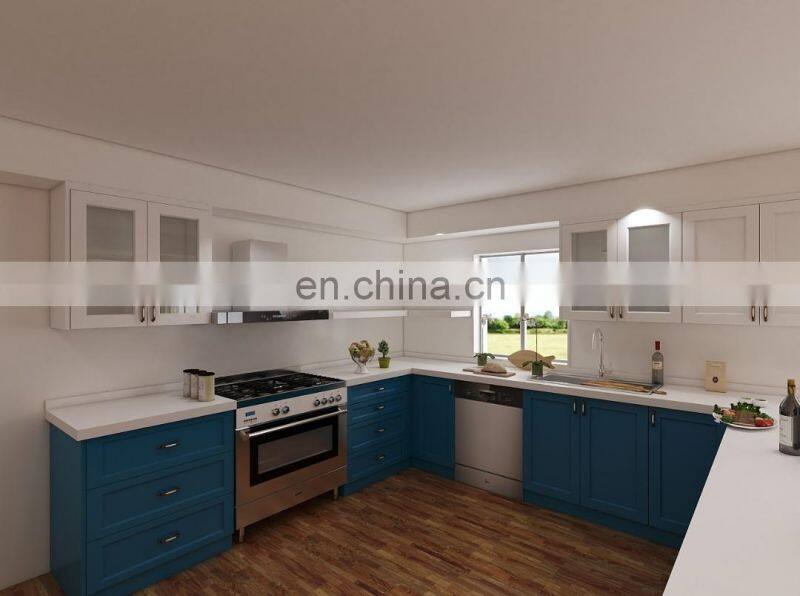 Fashion Modular Wooden Kitchen Cabinets With Artificial Marble