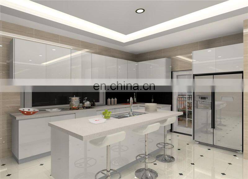 Modern Minimalist Eat-in Flat Pack White Lacquer Sink Kitchen Cabinet With Island