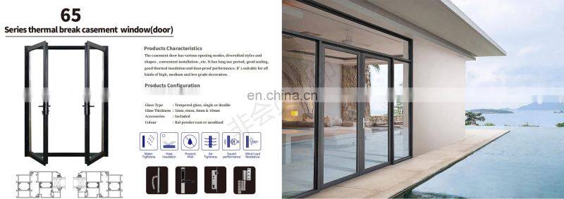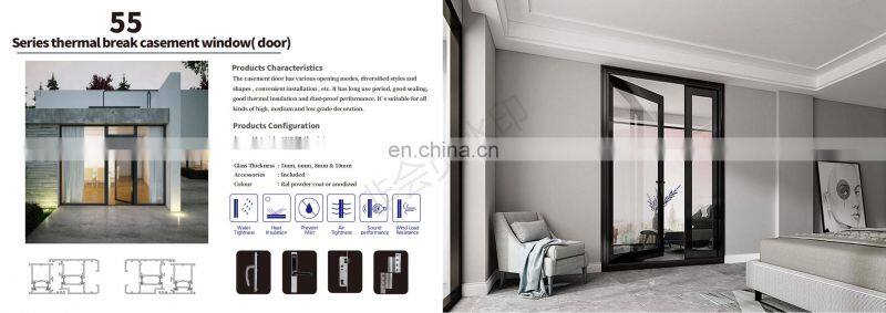 Thermal Break Double Glazed Aluminum Casement Swing Doors and Window French Door