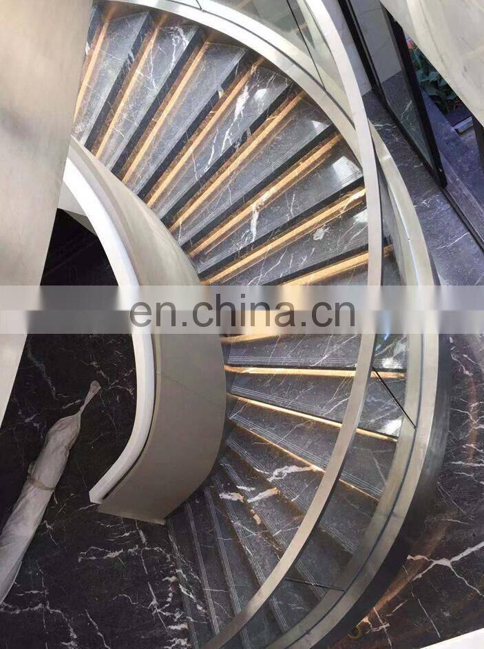 Customized Spiral Staircase Stainless Steel Marble Spiral Tempered Glass Wood Stairs